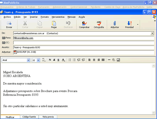 Los presupuestos se pueden enviar a los clientes por e-mail en formato PDF desde el sistema